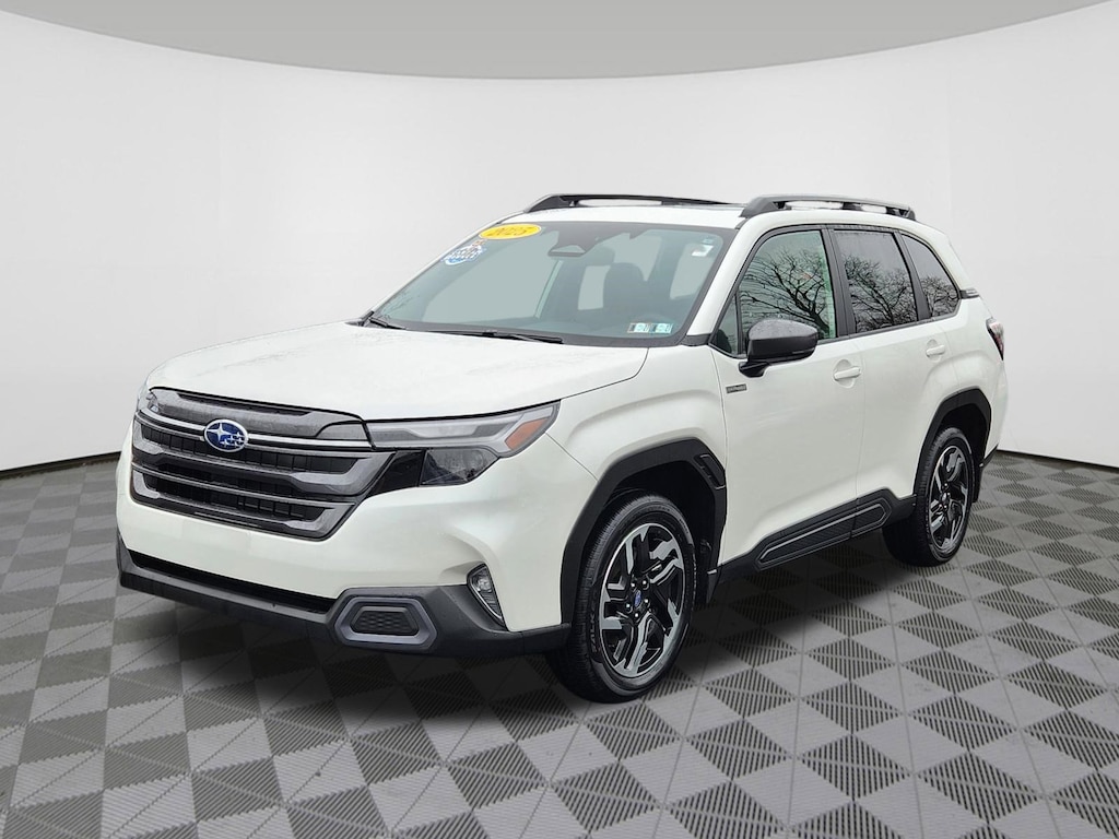 CLEAN CARFAX - ONE OWNER, EYESIGHT TECHNOLOGY, MOONROOF, BLUETOOTH HANDS FREE PHONE, BACK-UP CAMERA, ALL WHEEL DRIVE, REMAINDER OF FACTORY WARRANTY, SUBARU CERTIFIED, QUALIFIES FOR NEW VEHICLE INCENTIVES, 2.5L 4-Cylinder DOHC 16V. Recent Arrival! Certified. 2025 Subaru Forester Hybrid Limited Harman Kardon Audio + Power Rear Gate + Reverse Au Crystal White Pearl AWD Lineartronic CVT 2.5L 4-Cylinder DOHC 16V Subaru Certified Pre-Owned Details: