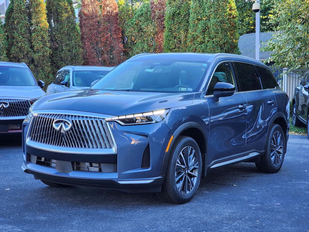 Third Row Seat, Navigation, Sunroof, Panoramic Roof, All Wheel Drive INFINITI LUXE with Moonbow Blue exterior and Graphite interior features a 4 Cylinder Engine with 268 HP at 5600 RPM*.
