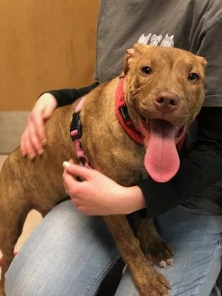 |  Darbee - Adopted!! Darbee is a three year old Pittie Mix. She was transferred to the PSPCA from the city shelter. Darbee is incredibly sweet, lovely, and approved for any home! Darbee is very quiet too. She is just the sweetest dog. Stop by the shelter to meet her! |