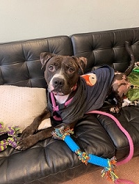 |  Apple - Adopted!! Apple is a six month old Pittie. She was recently surrendered to the shelter when her owner could no longer care for her. Apple and her two siblings are all available for adoption. She is excitable and loving and could go home with most families. She loves other dogs too! Apple is smart - already knowing some commands. Stop by the PSPCA to meet her! |